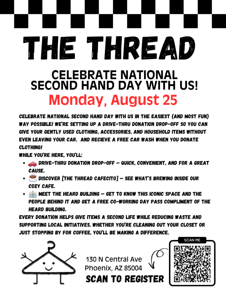 As a thank-you for your donation, you’ll receive a FREE car wash — because giving back should feel good in every way. Plus, discover The Thread Cafecito and connect with our community. Mark your calendar and be part of something fun, fast, and impactful!